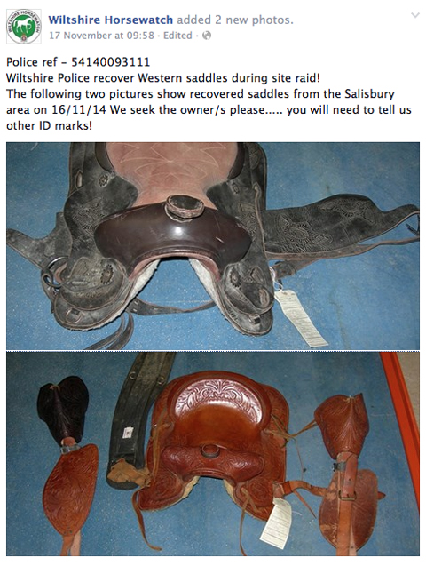 Only last month two stolen saddles - albeit western style collectors' pieces - were located by police during a raid in the south of the county (see below.}